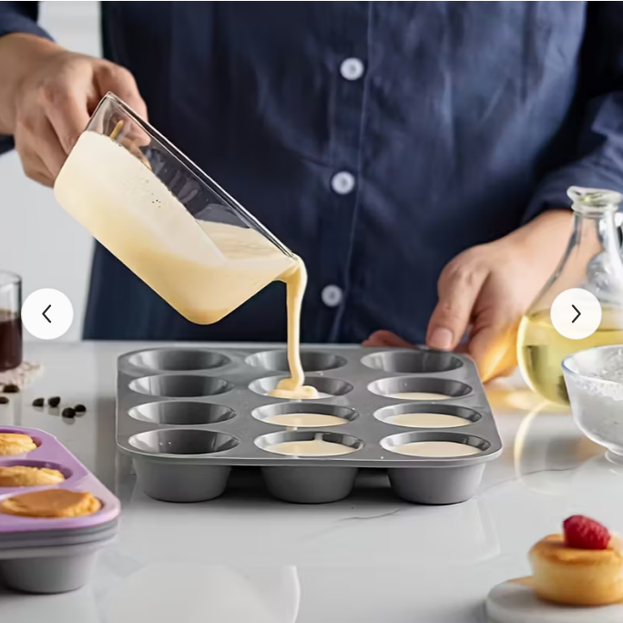This silicone baking set is designed for everyday home baking and a wide range of kitchen tasks. It combines a round and square cake pan, a loaf-style pan, a muffin pan, and a versatile bread pan so you have the right base for different recipes. Silicone distributes heat evenly, helping batter bake in a steady, consistent way. Flexible sides make it easy to release baked goods while keeping their shape and clean edges. The material handles high temperatures and works with different oven types, including convection and standard ovens. After use, the pans clean quickly, so prep and cleanup stay simple. The set suits cakes, bread, pizza, muffins, and assorted pastries when you want one coordinated bakeware style.